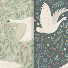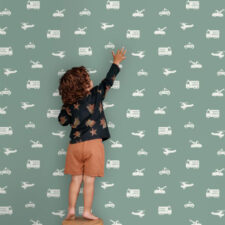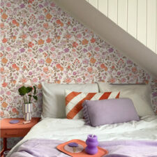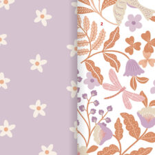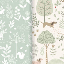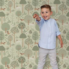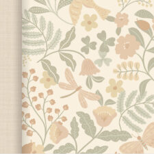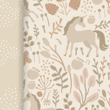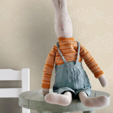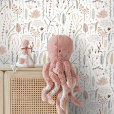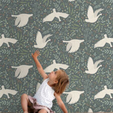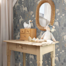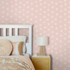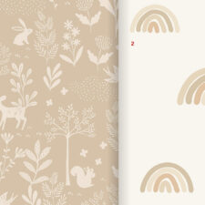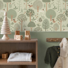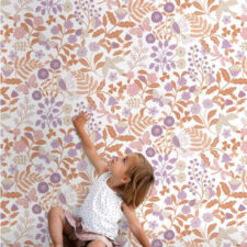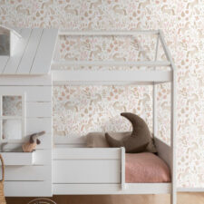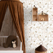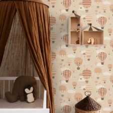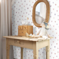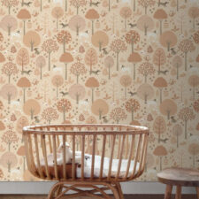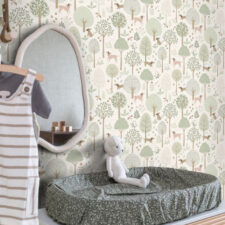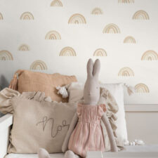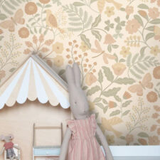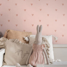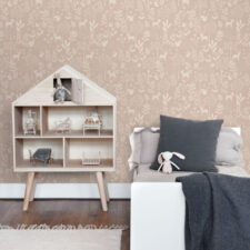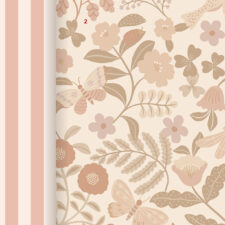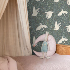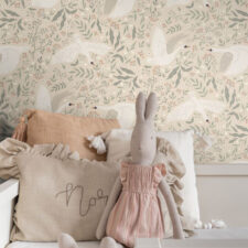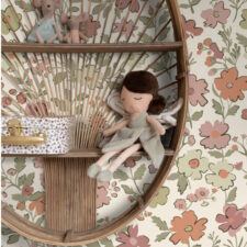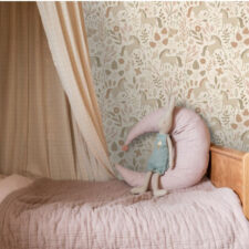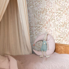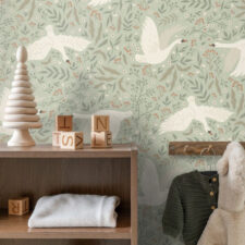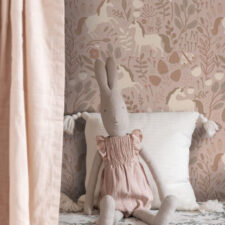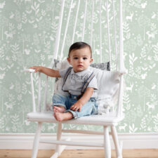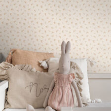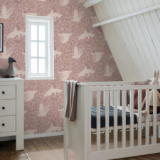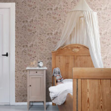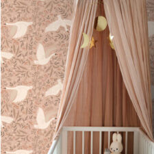 Όμορφες βρεφικές ταπετσαρίες που συνδυάζονται με κομποζέ ρομαντικά υφάσματα για ένα μοναδικό βρεφικό δωμάτιο.
