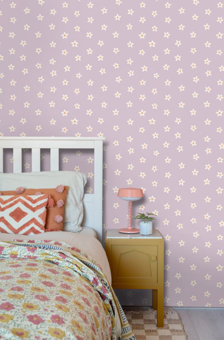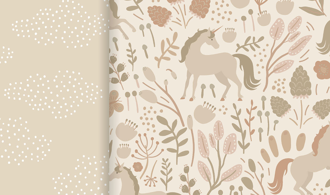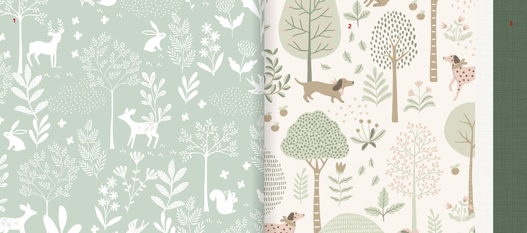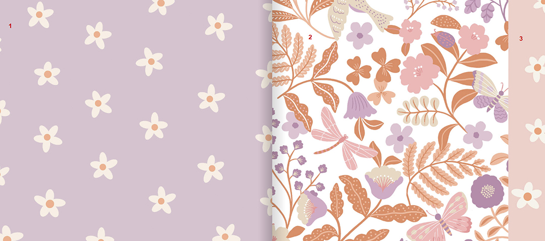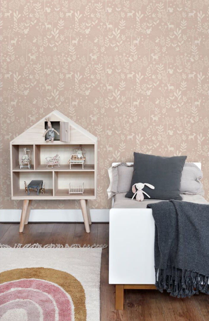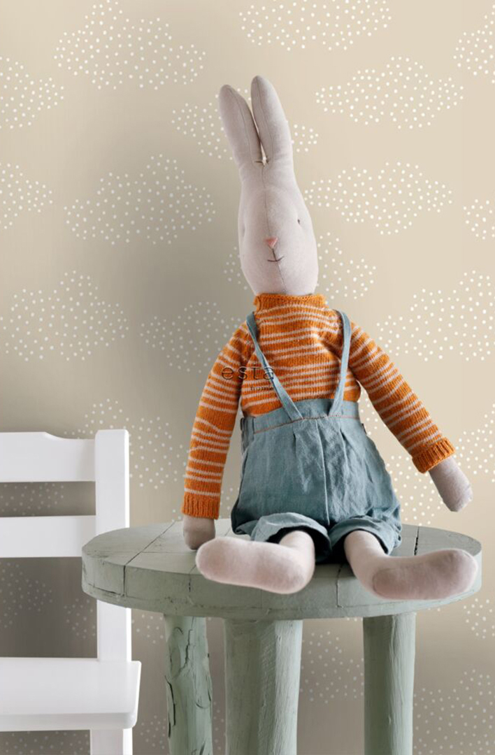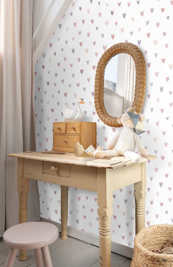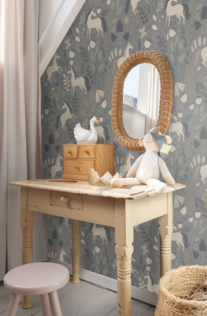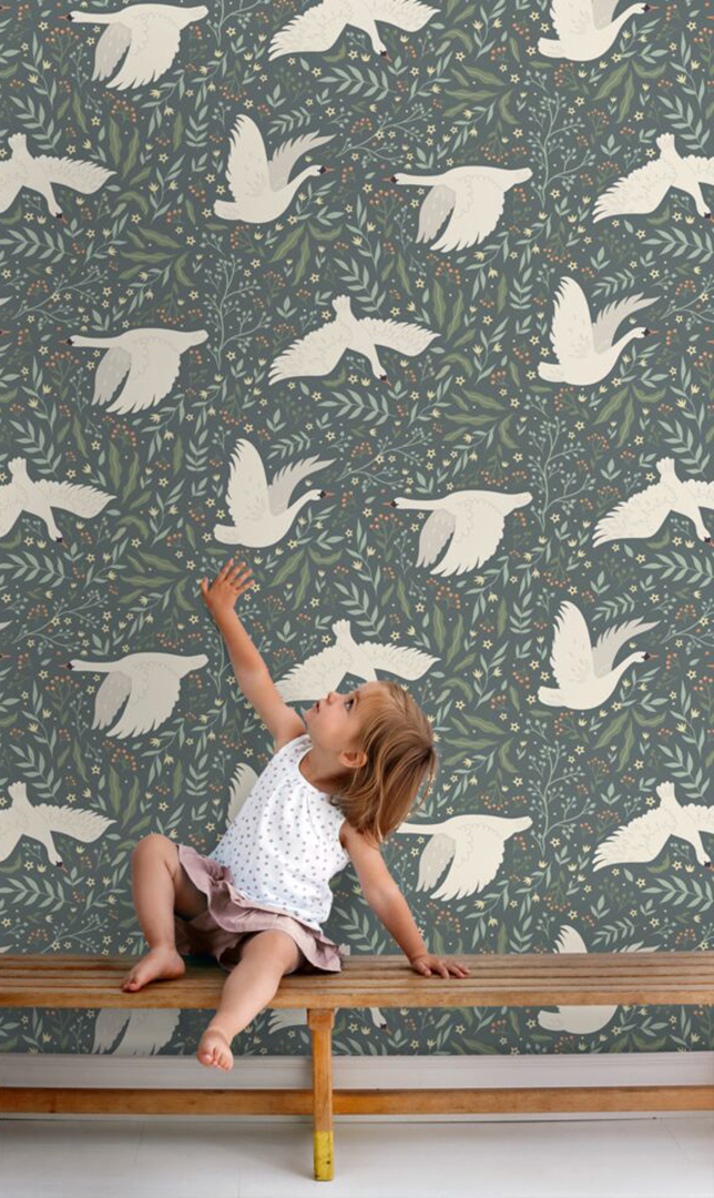 Όμορφες βρεφικές ταπετσαρίες που συνδυάζονται με κομποζέ ρομαντικά υφάσματα για ένα μοναδικό βρεφικό δωμάτιο.
