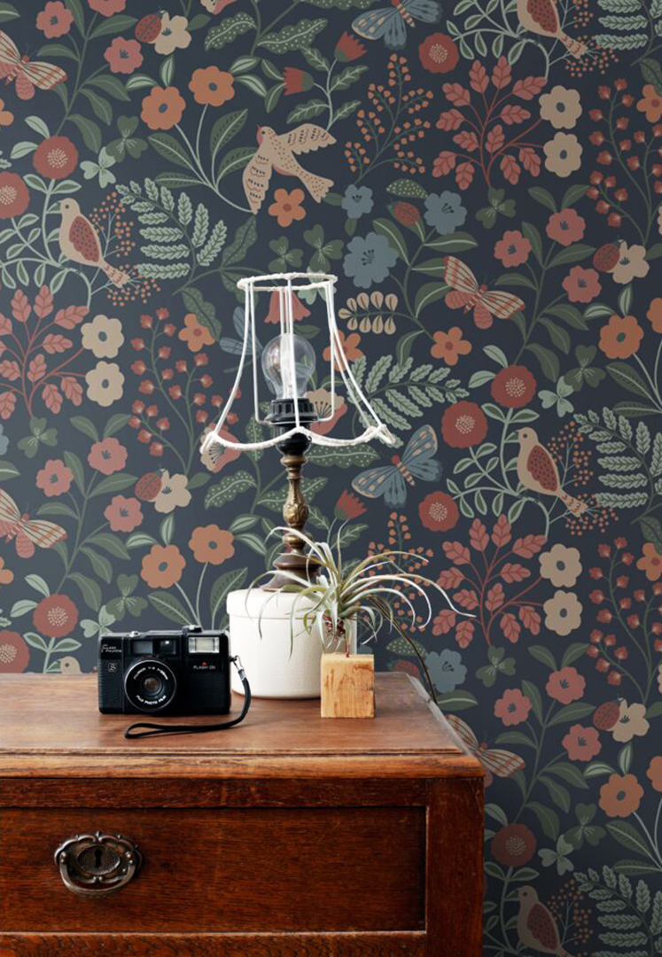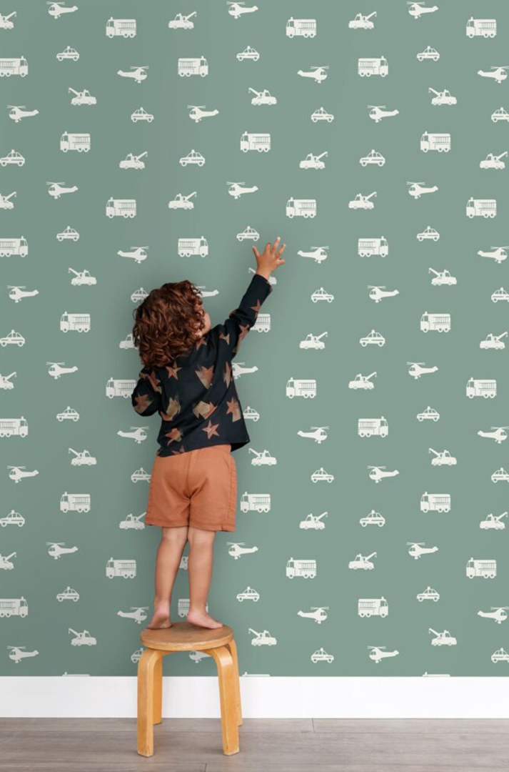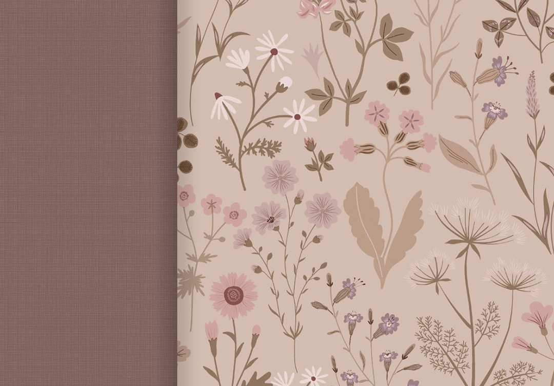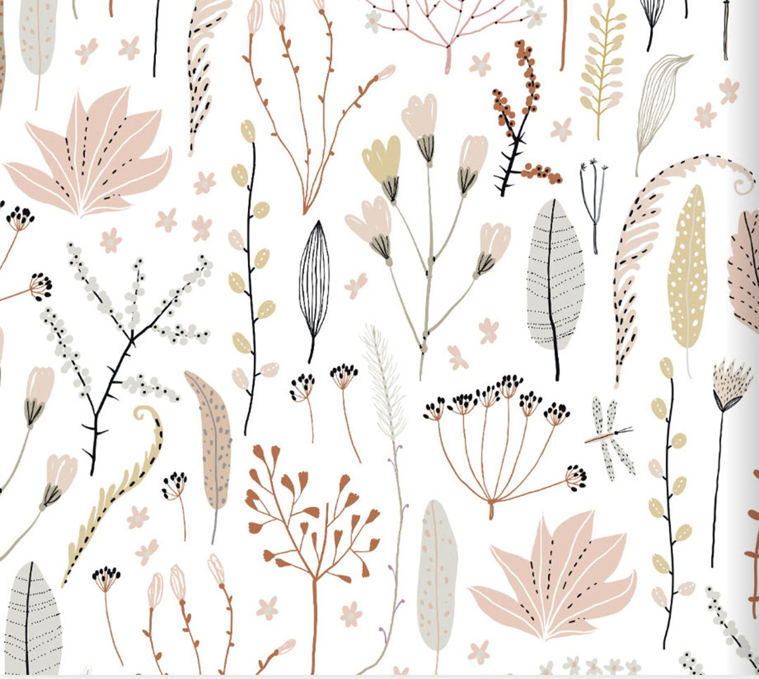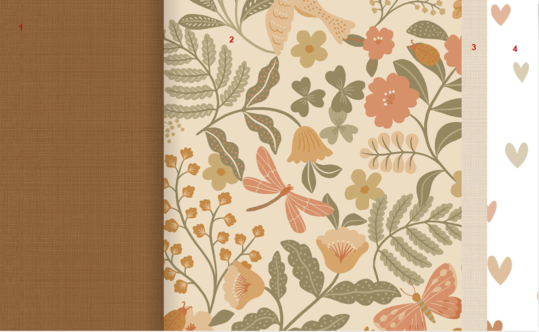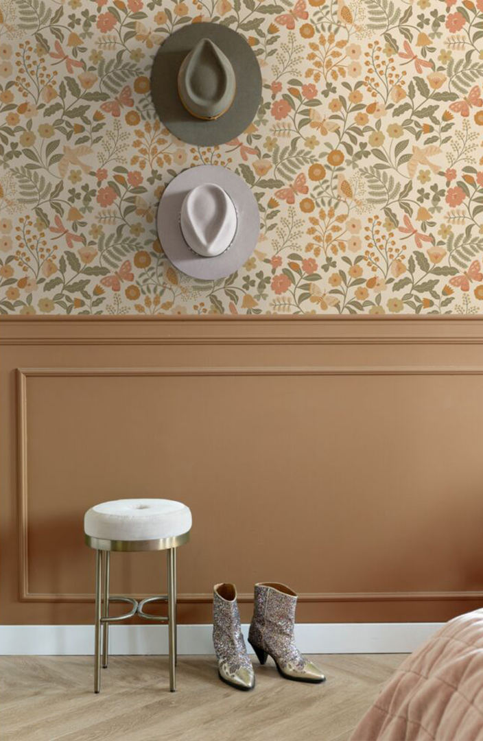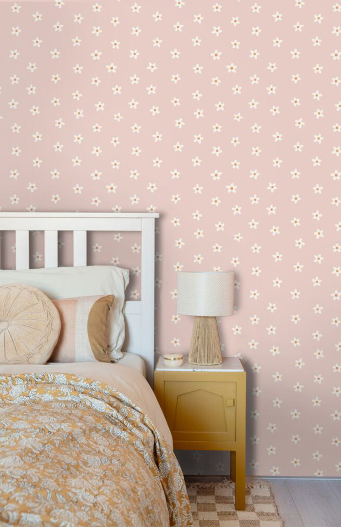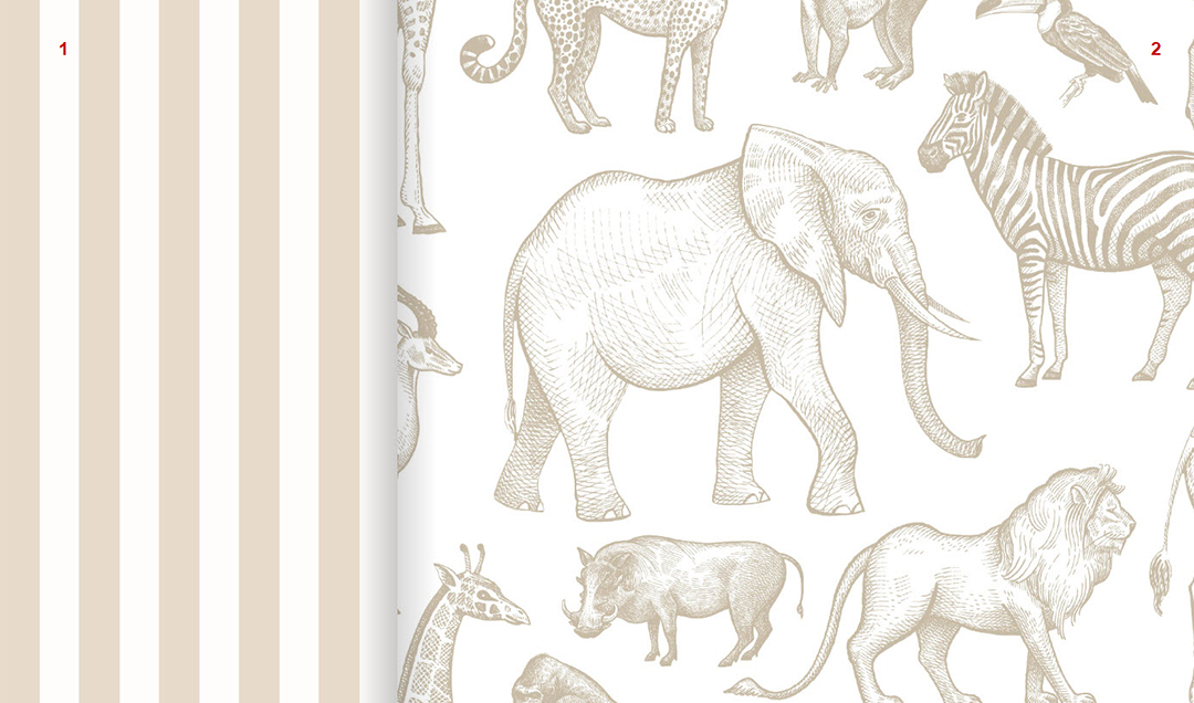 Όμορφες βρεφικές ταπετσαρίες που συνδυάζονται με κομποζέ ρομαντικά υφάσματα για ένα μοναδικό βρεφικό δωμάτιο.