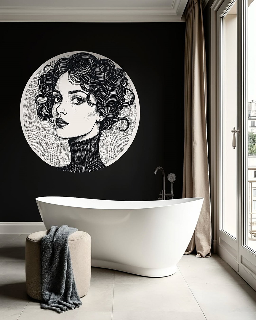 KT-1152-FOTOTAPETSARIA-RETRO-PORTRETO-SE-MAVRO-FONTO-100X100-T36